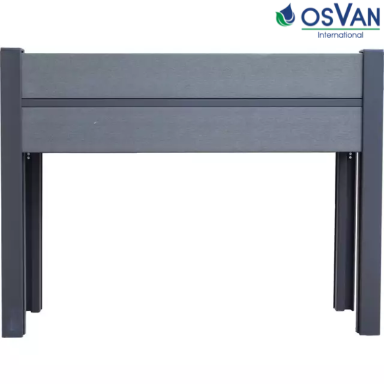 - Jardinière en WPC gris granite, piquets en aluminium.